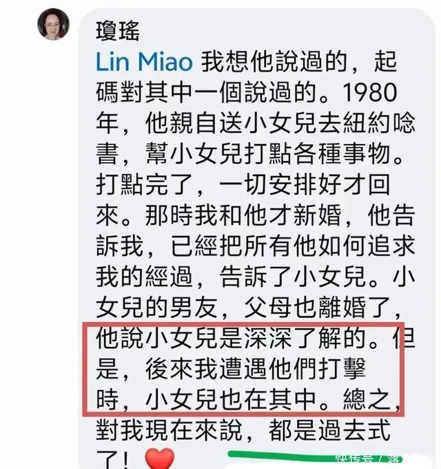 他在送小女儿平莹去纽约读书时的路上,还在讲他和琼瑶山崩地裂的爱情细节。