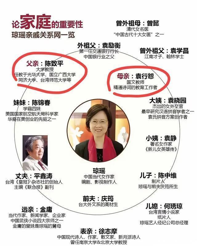 陈中维是琼瑶和作家庆筠所生。 平云、平莹等三个子女是平鑫涛和前妻林婉珍的宝贝孩子。 一度,平鑫涛还试图让三个孩子理解他之所以坚定与琼瑶走到一起的原因。